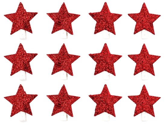 LAALU.cz Komplet 12 okraskov: zvezde na žebljičku rdeče barve 4 cm