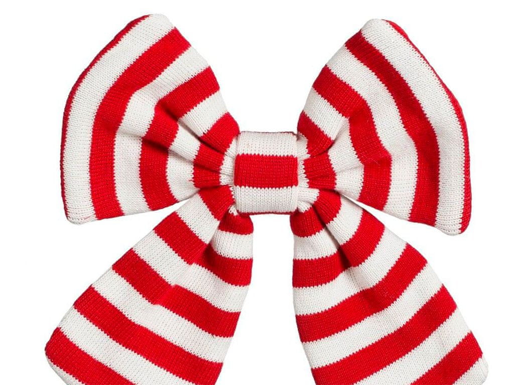 Rdeče-beli trak za zavijanje daril ali kot okrasek za božično drevo. Celoten opis
