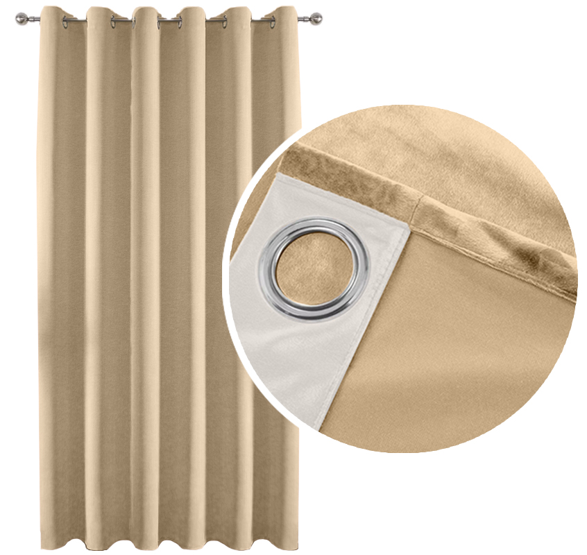 ŽAMETNA ZATEMNILNA ZAVESA na obročkih BEŽ 140×250 cm