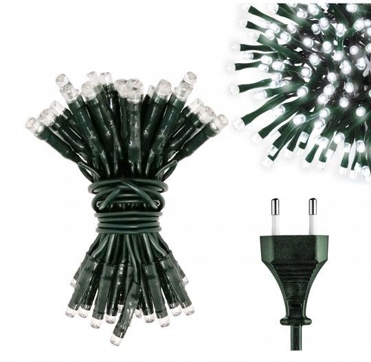 10 m božične lučke: Te božične lučke so idealne za okrasitev božičnega drevesca, sadike ali okenskih prevlek v vašem domu. Te božične lučke imajo varčne LED diode, ki ne oddajajo toplote in oddajajo žive barve. Značilnosti: Znamka: Emos Barva kabla: Zelena Barva LED diode: Hladno bela Dolžina kabla: 10 m Moč: 12 W Vrsta napajanja: Omrežno Število LED diod: 200 Razmik med LED diodami: 5 cm Velikost LED diode: 5 mm Dolžina kabla: 1,5 m Uporaba: Notranja uporaba Razred IP: IP20