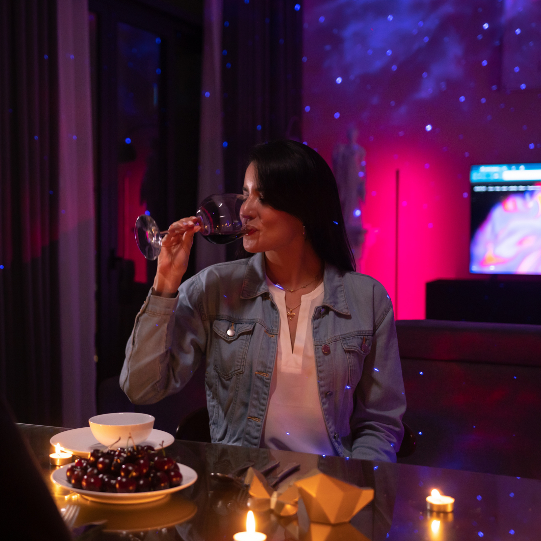 Ustvarite čarobni svet v sobi vaših malčkov ! Projektor galaksije je popoln dodatek za otroško sobo – odličen tako kot dekoracija kot tudi kot pripomoček za spanje. Deluje kot nežna nočna lučka, njena mehka zvezdasta in mesečina pa ustvarjata prijetno vzdušje in pomagata vašemu otroku, da se počuti mirno in varno. Je zanesljiv spremljevalec tako za dojenčke kot za starejše otroke – navdušil bo vsakega otroka in postal sestavni del njihovih nočnih ritualov. Za odrasle Hišna zabava s prijatelji