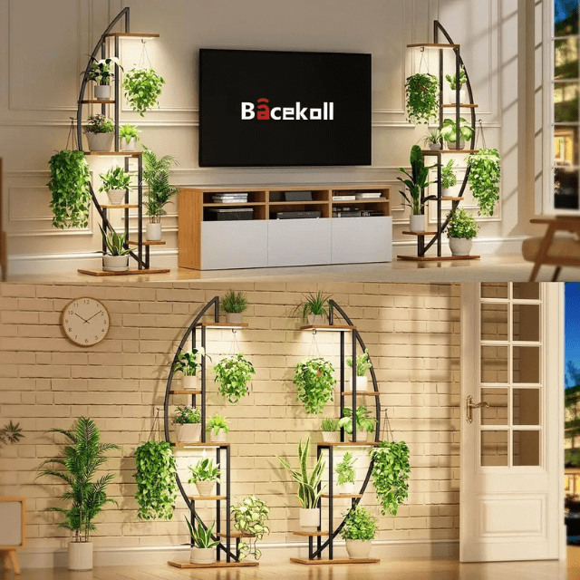 Smania Stojalo za rastline v obliki polmeseca z osvetlitvijo Moonflower | Stojalo za cvetlice | Stojalo z lučkami