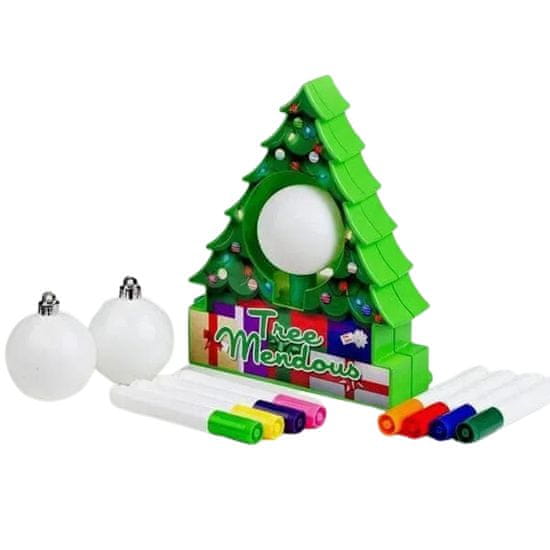 • Izdelek vključuje podstavek-smrekico, 3 kroglice za risanje in 8 flomastrov.