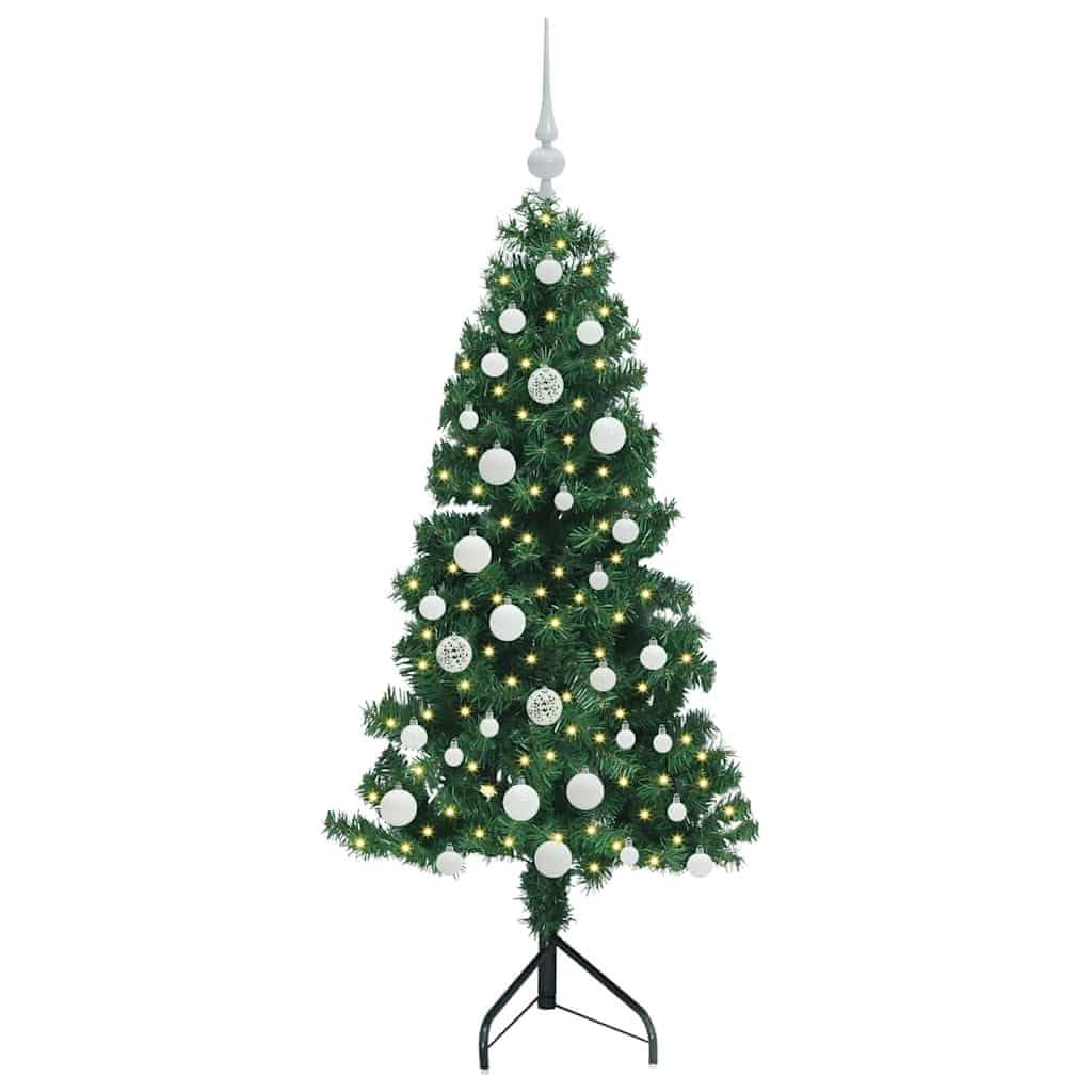 To umetno božično drevo s predprikazom kombinira moderno obliko s prazničnim vzdušjem in ponuja odličen način za okraševanje, ki ne zavzame veliko prostora. Super za tiste, ki imajo radi minimalistično estetiko, saj se njegove čiste linije brez težav prilegajo sodobnim prostorom. Četrtinska zasnova omogoča, da se lepo prilega v kote, kar je idealno za manjše dnevne sobe ali zaščitene zunanje prostore. Z bujnimi zelenimi PVC vejami to drevo ponuja klasičen videz, ki ga dopolnjujejo tople bele LED svetlobe za prijetno, vabljivo vzdušje.