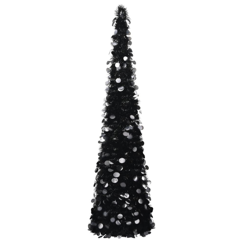 Naša sijoča črna zložljiva umetna novoletna jelka ustvarja prijetno in edinstveno vzdušje za prihajajoče novoletne praznike.