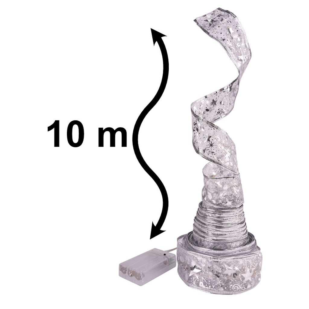 /p> Srebrni LED trak za božično drevo: dolg – 10 metrov trak je popolnoma primeren za okrasitev hiše za praznike. Fleksibilnost – možnost izbire Vsaka oblika traku ga naredi vsestranski božični okras Srebrna – Barva traku popolnoma harmonizira diode v hladni in beli barvi – končno, bodisi fleksibilen bodisi vsestranski & nbsp; Tehnični parametri: Vhodno napajanje: 3× AA baterija (ni priložena) Število načinov osvetlitve: 8 [ > Barva LED: hladno bela Vodoodpornost: IP44 Dolžina traku: 10 m Dimenzije paketa: 14 cm x 7 cm x 7 cm & nbsp; Srebrn LED trak je popoln božični okras! Lahko ga poljubno ustvarite in z njim okrasite božično drevo ali ustvarite božične okraske. Baterijski napajalnik vam omogoča, da trak obesite tudi na mestih brez električne vtičnice. 100 LED diod v hladnih in belih barvah ter 8 načinov osvetlitve vam omogočajo ustvarjanje atmosferske osvetlitve, ki se prilagaja vsaki priložnosti. Izdelek pakiran v kartonsko embalažo.