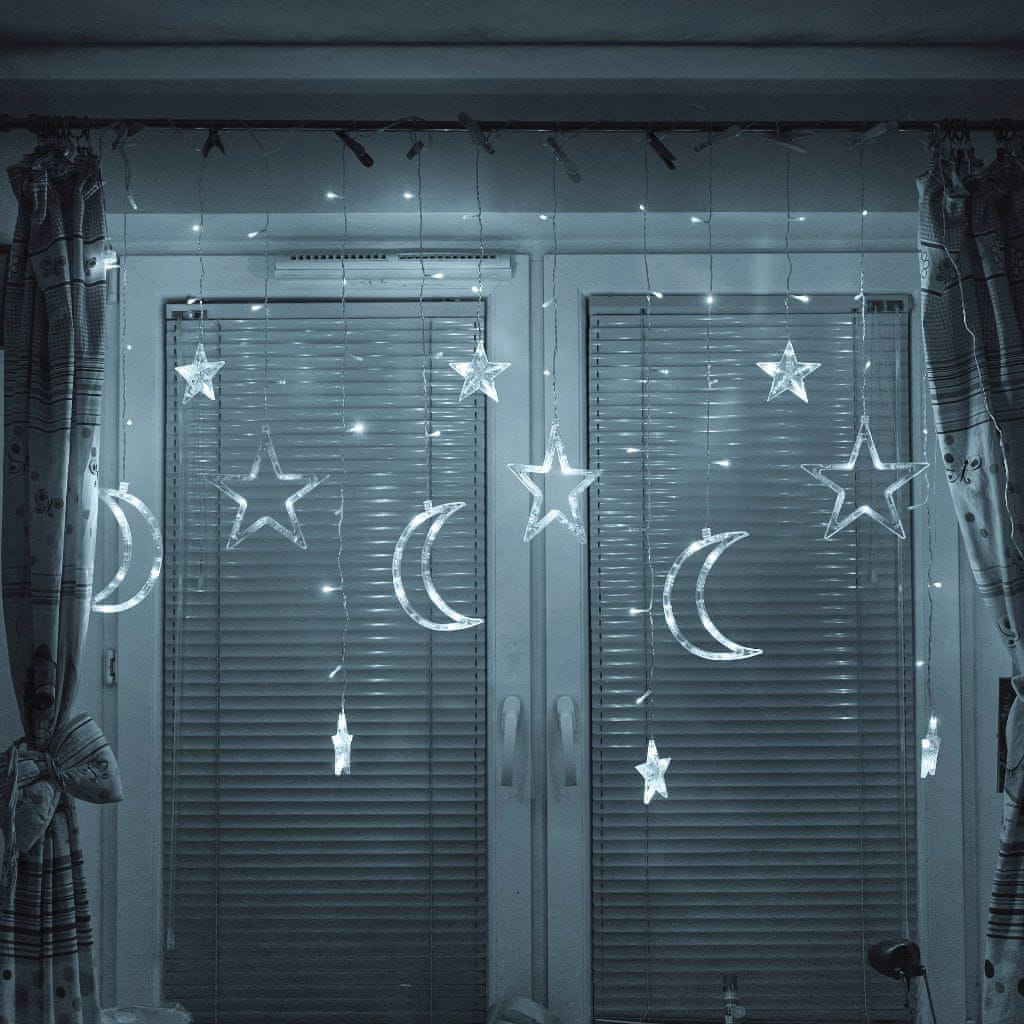 WOWO LED viseče svetilke Moon Stars - 2,5 m 138 LED, hladno bela