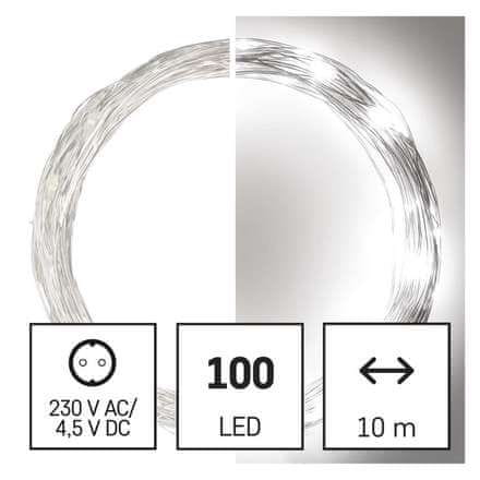 Emos Božična veriga D3AC01 LED Christmas nano chain silver, 10 m, outdoor and indoor, cold white, timer