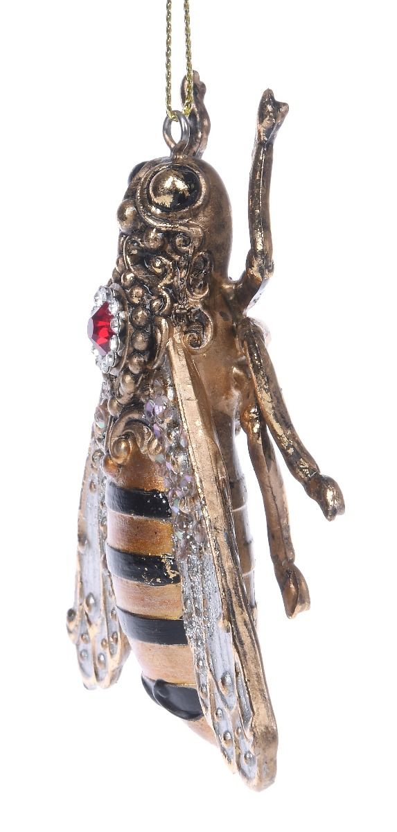 Zlata osa iz kolekcije Amber Glamour je izviren okras, ki se odlično poda k elegantnim in šik aranžmajem. S svetlimi krili, ki se zdijo prozorna, in okrasnim rdečim kamnom bo zagotovo ostal neopažen do najmanjše podrobnosti. Odlično bo izstopal med temno zelenimi vejami in bo vašemu okrasku dodal pr Celoten opis