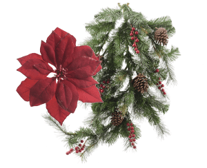 Božična girlanda iz umetnih vejic, ki spominjajo na pravo iglavje.