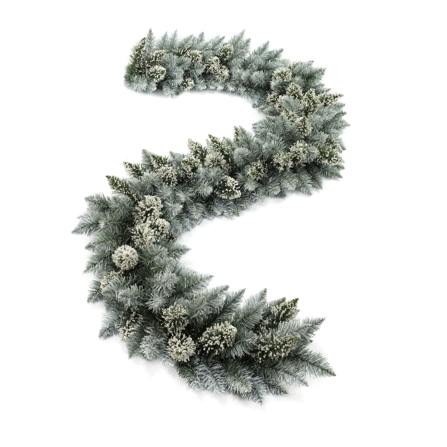 Božična girlanda iz umetnih vejic, ki spominjajo na pravo iglavje. Veriga je dolga 270 cm in ima zelo gosto sestavo vejic, zaradi česar se odlično dopolnjuje z drugimi okraski.