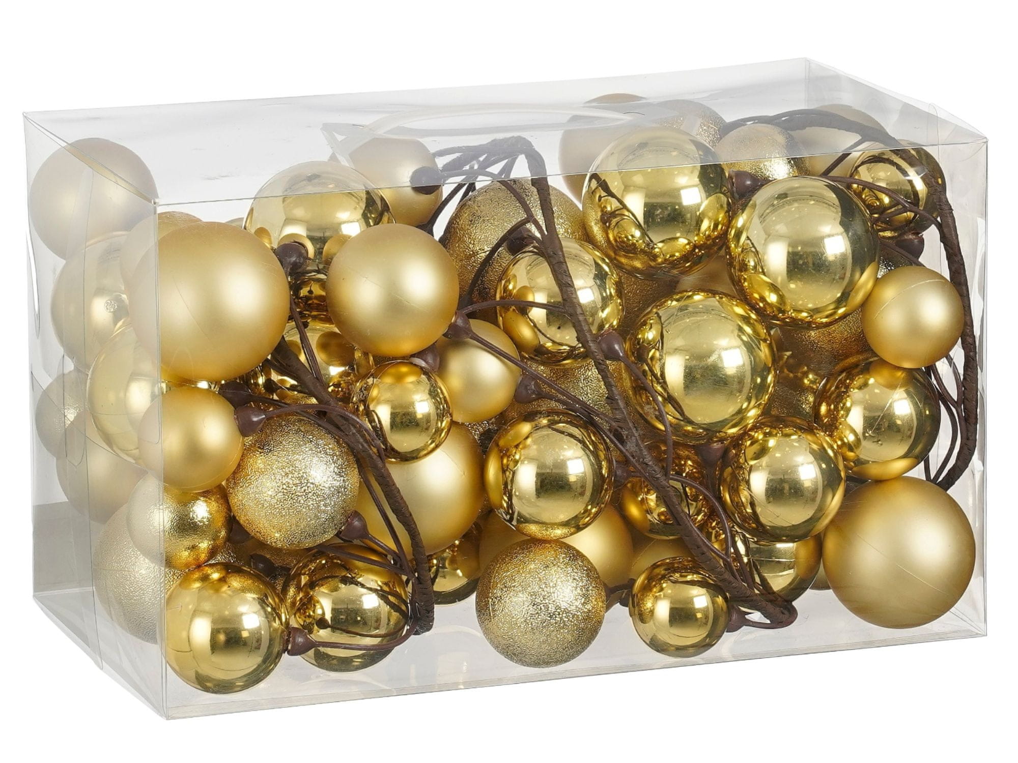 Zlata girlanda z 80 pritrjenimi okraski različnih velikosti bo vašemu domu dodala praznično vzdušje.