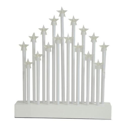Božični svečnik v obliki loka je izdelan iz naravnega smrekovega lesa, bele barve. Paket vsebuje 17 žarnic v obliki zvezde.