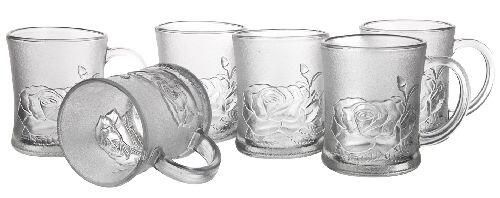 Sklop ROSALIA vsebuje 6 kosov vrčev iz matiranega stekla s prostornino 250 ml z motivom vrtnice. Vrčki so primerni za tople in hladne pijače.