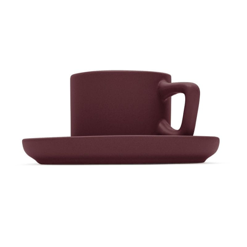 Ta vrhunski komplet skodelic in podstavkov iz kamenine prinaša pridih razkošja v vsak trenutek pitja espressa. S svojo matirano bordo barvo vnaša v vaše obedovanje topel in prefinjen poudarek, ki bo očaral že na prvi pogled.