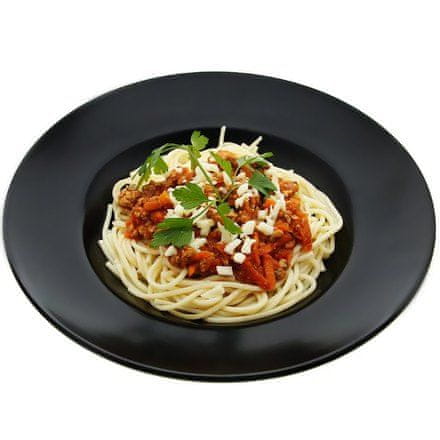 Popoln krožnik za testenine in druge jedi, ta privlačna črna posoda združuje klasično eleganco s sodobnostjo. Njegov velik premer 24 cm vam omogoča, da prikažete vse okuse, ki ste jih pripravili, in še vedno imate prostor za več. Poleg tega podstavek z višino 10,5 cm poskrbi, da hrana ne drsi. Izdelan je iz najkakovostnejše keramike in je zasnovan tako, da doda brezčasen, klasičen pridih vsem posodam. Ne samo, da je posoda presenetljivo lepa, ampak jo je tudi primerno za pomivalni stroj in pečico za enostavno in preprosto čiščenje.
