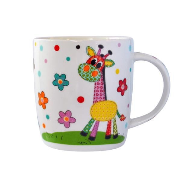 Keramični lonček z motivom živali, ki bo pritegnil predvsem otroke. Primerno za pomivanje v pomivalnem stroju. Prostornina vrča je 350 ml. Dimenzije – 9 × 9 cm. Okras – konj, žirafa, slon.