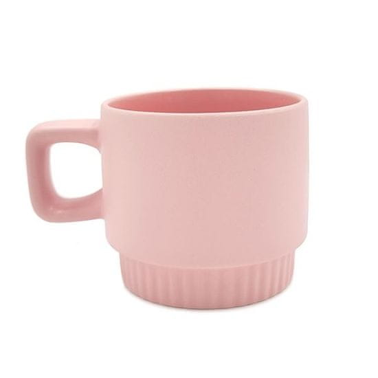 Mat keramični vrč z nazobčanim dnom in kvadratnimi jezički Zunanja stran je prevlečena s poliestrom Primeren za sublimacijski tisk Višina 82 mm, premer 91 mm Prostornina 300 ml Barva roza Celoten opis