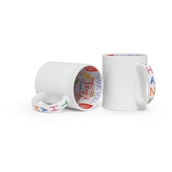 bela sijajna keramična skodelica notranja stran, dno in ročaj so potiskani s tematsko grafiko – THANK YOU zunanja stran je prevlečena s poliestrom, primerna za sublimacijski tisk višina 95 mm, premer 80 mm volumen … Celoten opis