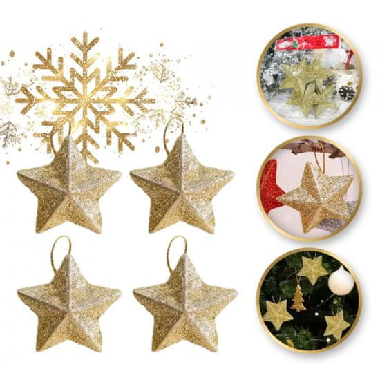 Flamenco Mystique Sklop zlatih bleščečih božičnih okraskov Zvezdice, 4 kos, 7 cm BSN54