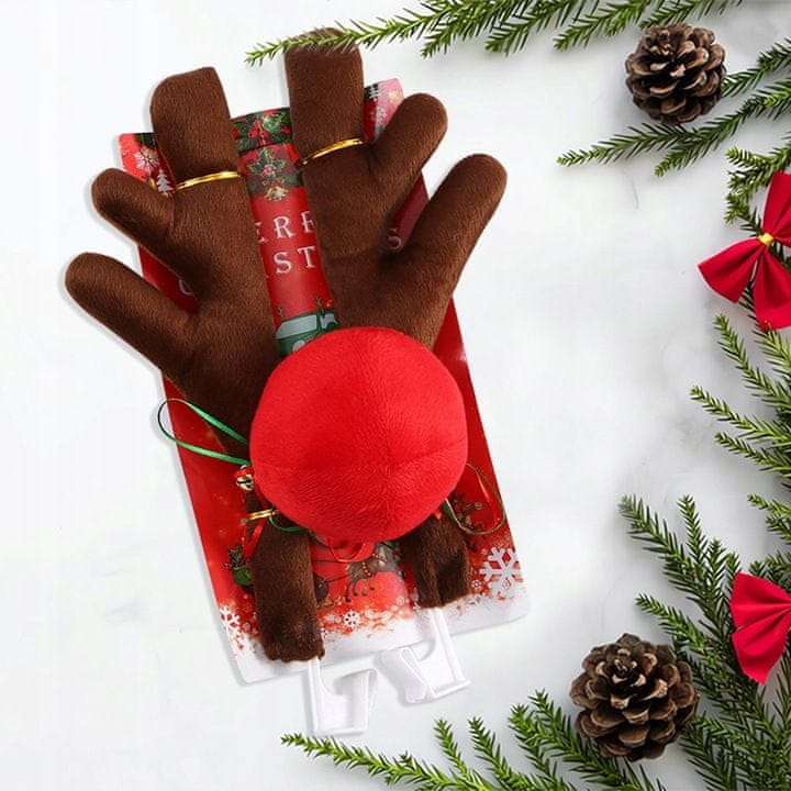 - Jeleni rogovi: Izdelani iz mehkega materiala, opremljeni z držali za pritrditev na vrata, okrašeni s pentljami in zvončki