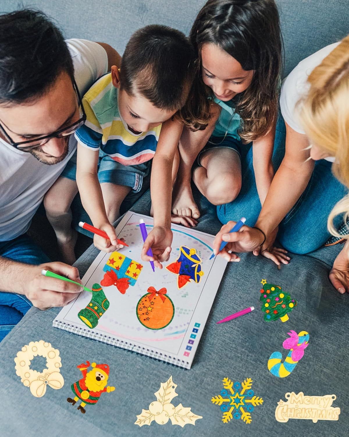 Nikcorp Leseni božični okraski za barvanje 14 kosov | Ustvarjalni set za otroke z barvicami in vrvicami za obešanje na jelko