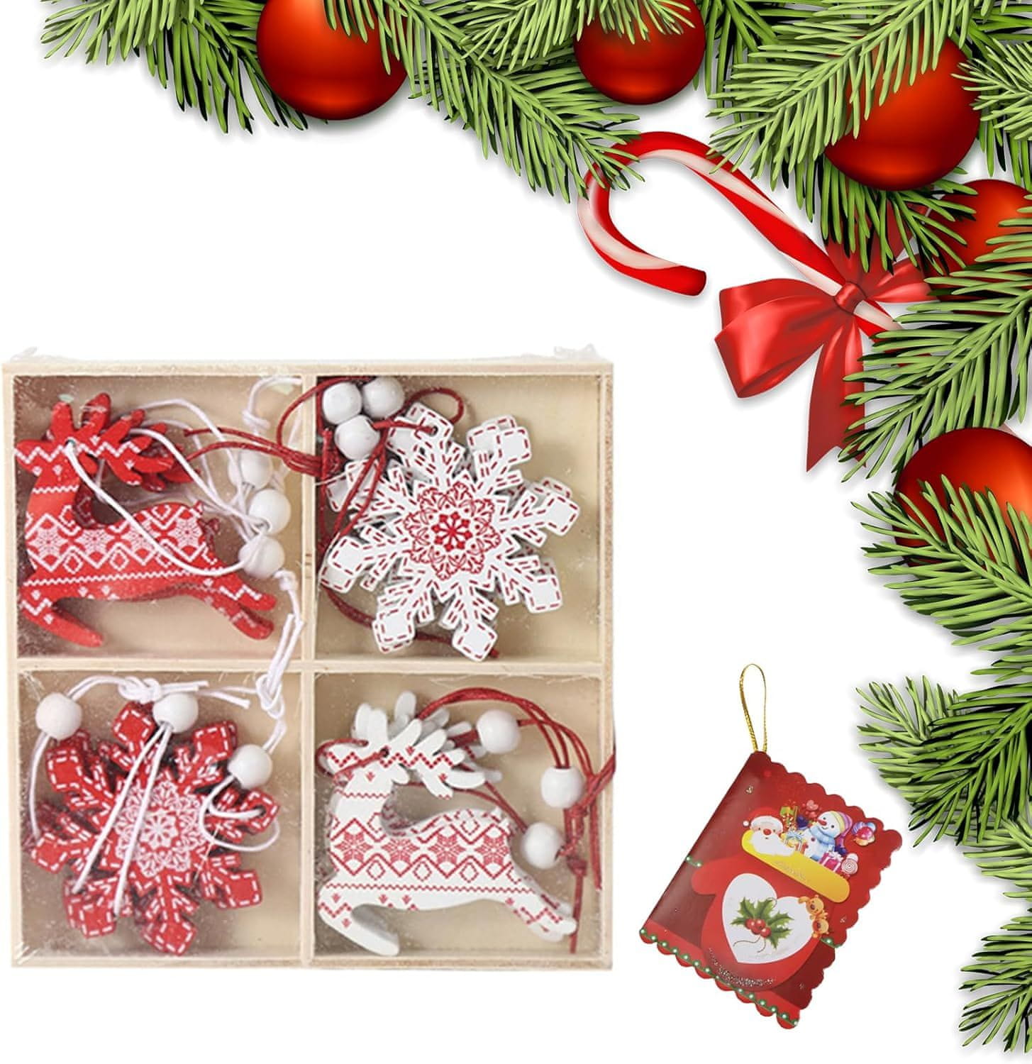 Nikcorp Leseni božični okraski za jelko 12 kosov | Obeski iz naravnega lesa za praznično dekoracijo doma in božično drevo