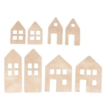 Leseni okraski Hišice 5,5–10 cm, 8 kosov debelina 1 mm