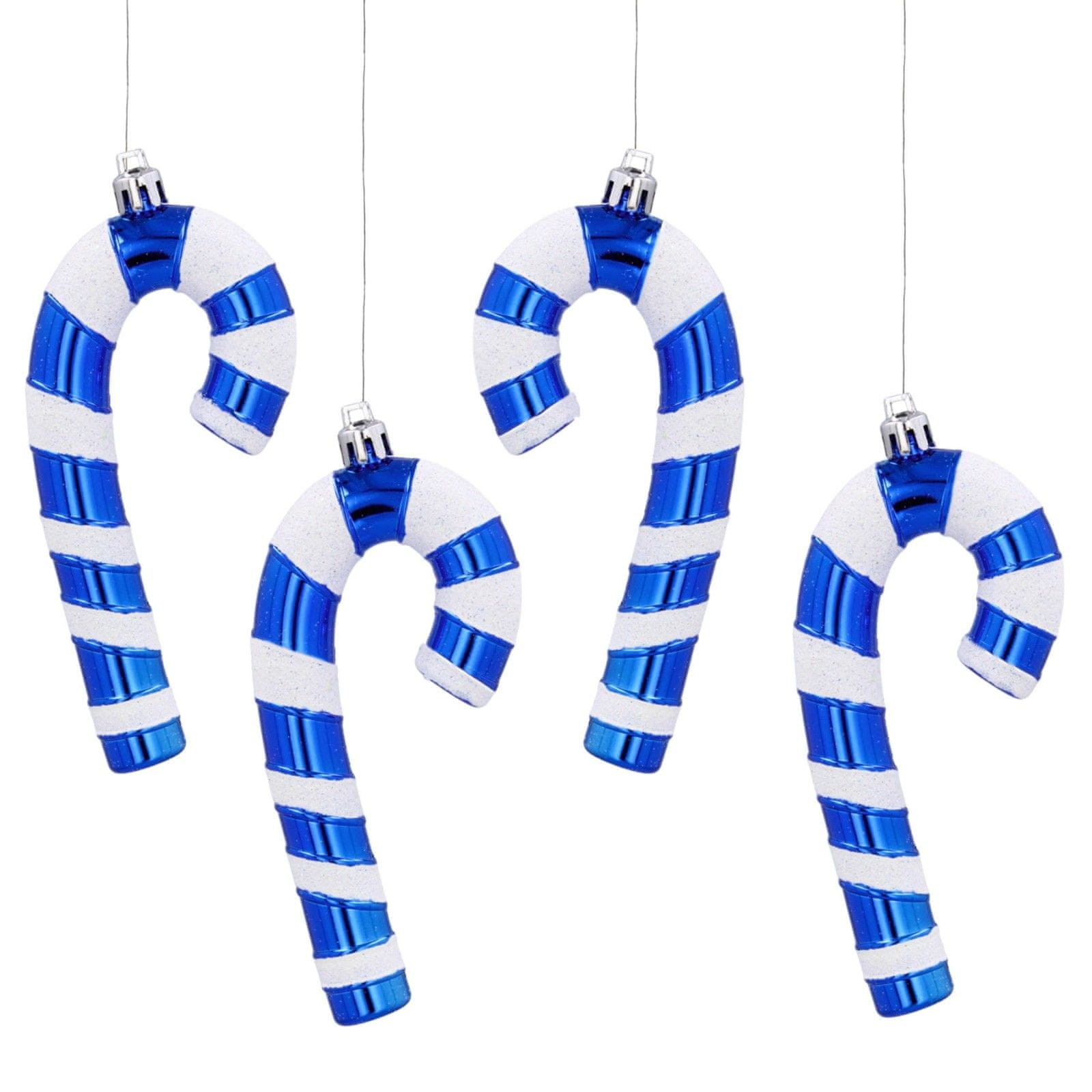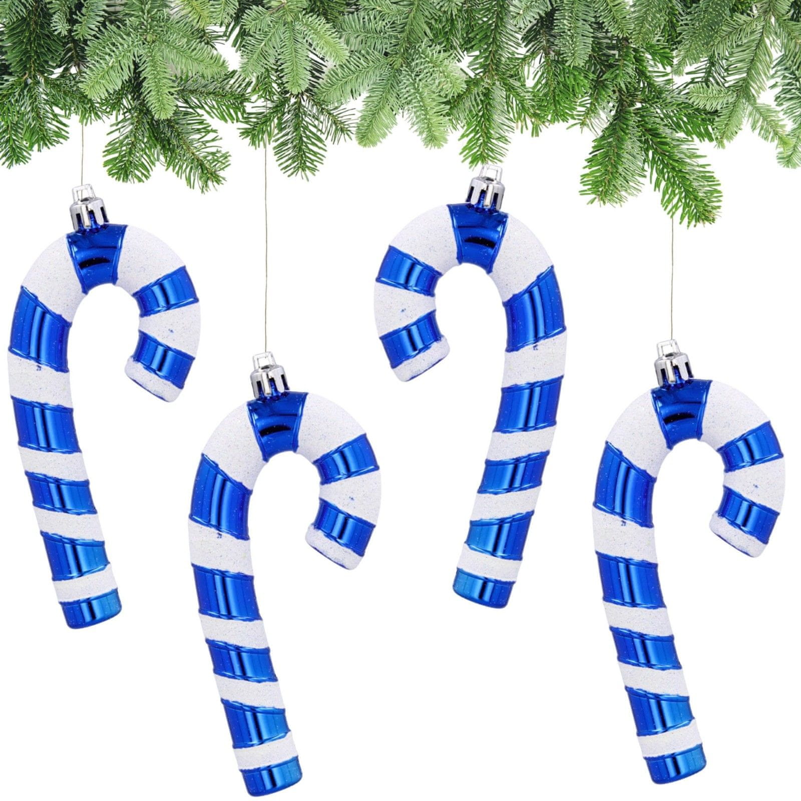 Komplet štirih plastičnih okraskov za božično drevo v obliki klasičnih sladkornih palčk, visokih 13 cm, je odličen način, da poudarite čarobnost božiča.