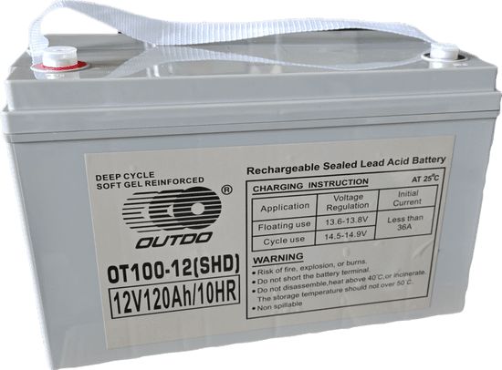 Outdo OT100-12(SHD) svinčen akumulator za ciklično uporabo OT100-12(SHD) • 12V 120Ah • GEL|VRLA • DXŠXV: 333x173x216 • Teža: 32,5kg
