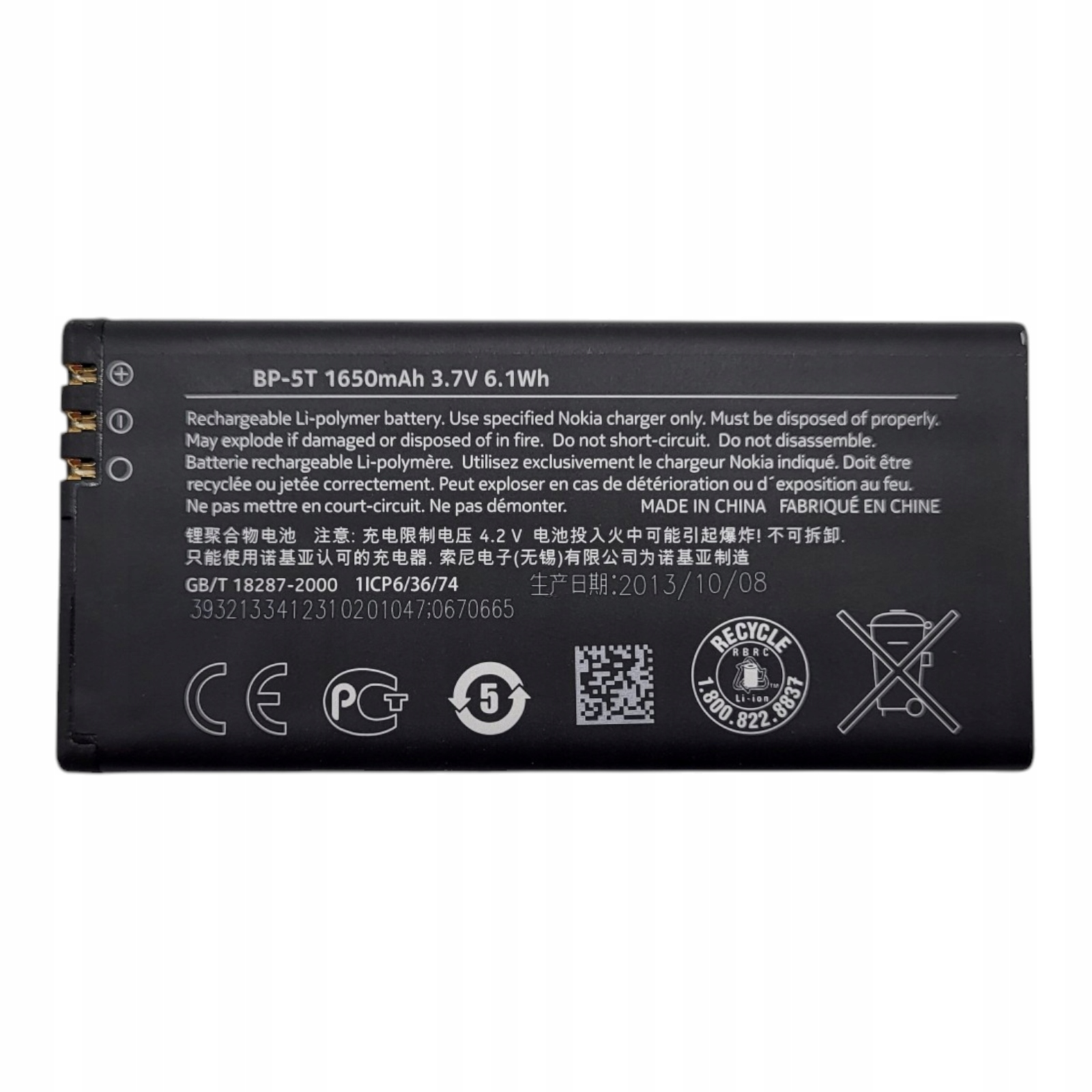 NOVA BATERIJA BP-5T USTREZA ZA NOKIA LUMIA 820 1650mAh Celoten opis
