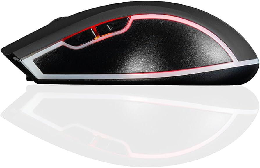 MODECOM MC-WRM1 BLACK je visokokakovostna brezžična optična miška, zasnovana za tiste, ki iščejo računalniško opremo z izjemnim in plenilskim dizajnom. Igralni izdelki MODECOM VOLCANO so nas navdihnili, da smo ustvarili MC-WRM1 BLACK. To je razlog, zakaj so naši strokovnjaki za igre podprli proces oblikovanja. Miška MC-WRM1 bo pritegnila vašo pozornost s svojo ozko silhueto, obogateno s stranskimi elementi z LED osvetlitvijo ozadja. Izberete lahko eno od podprtih DPI, zahvaljujoč gumbu nad drsnikom: 1000/1200/1600. Vgrajena 350 mAh baterija poskrbi, da pozabite na potrebo po rezervnih baterijah s seboj. Baterijo lahko kadar koli napolnite z uporabo reže microUSB na sprednji strani.