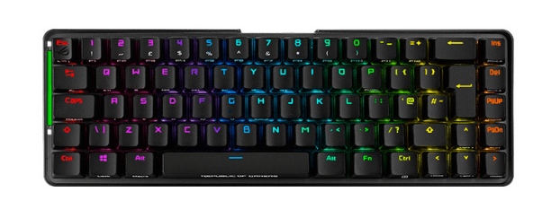 Asus ROG Falchion Wireless tipkovnica omogoča delovanje do 450 ur. Ko pa se izprazne, lahko ROG Falchion uporabljate tudi prek žične USB povezave. Tipke iz PBT materiala nudijo izjemno vzdržljivost, zahvaljujoč srednje visoki zasnovi pa so tudi bolj stabilne. Brezžična Aura Sync RGB osvetlitev nudi več kot 16,8 milijona različnih barv in kopico dinamičnih efektov. Ima tudi vgrajen notranji spomin za shrambo do 6 profilov z nastavitvami. Celoten opis