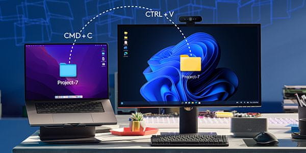 Tipkovnica se lahko poveže preko Bluetooth ali Logi Bolt USB sprejemnika. Omogoča povezavo in preklaplanje med tremi napravami in vam zagotovi hitrejše in bolj učinkovito delo.