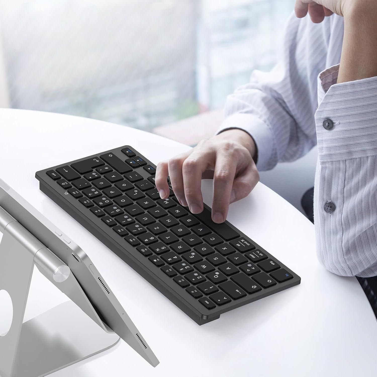 Nikcorp Tanka brezžična Bluetooth tipkovnica QWERTZ (DE) za tablice in telefone | Ultra tanka, lahka, črna, z baterijami