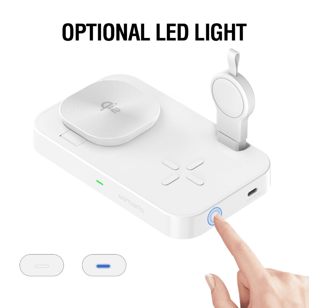 4smarts Qi2 Trident 3-v-1 brezžična polnilna postaja - za telefon, Samsung Watch in brezžične slušalke