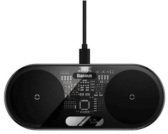 BASEUS brezžični dvojni polnilec z digitalnim zaslonom, 20W (WXSX010101) - odprta embalaža