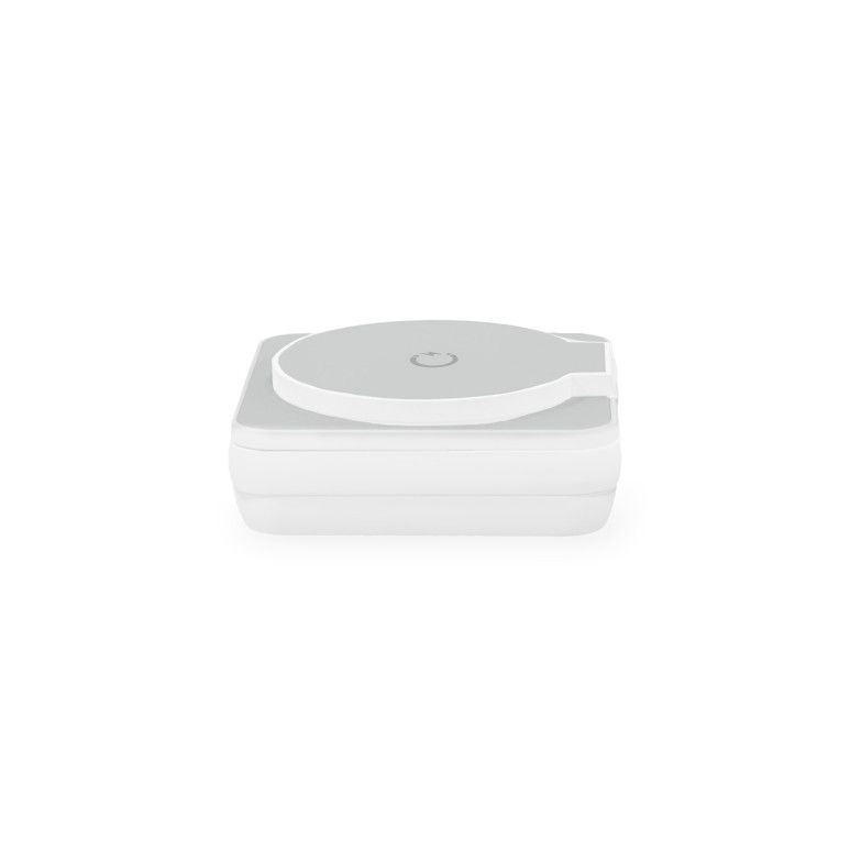 Zložljiva in kompaktna zasnovaPolnilnik ima minimalistično, zložljivo zasnovo v beli in srebrni barvi. Enostavno ga zložite v tri dele, zato zavzame zelo malo prostora v žepu, nahrbtniku ali kovčku. Opremljen je z enim LED-indikatorjem, ki prikazuje stanje polnjenja.