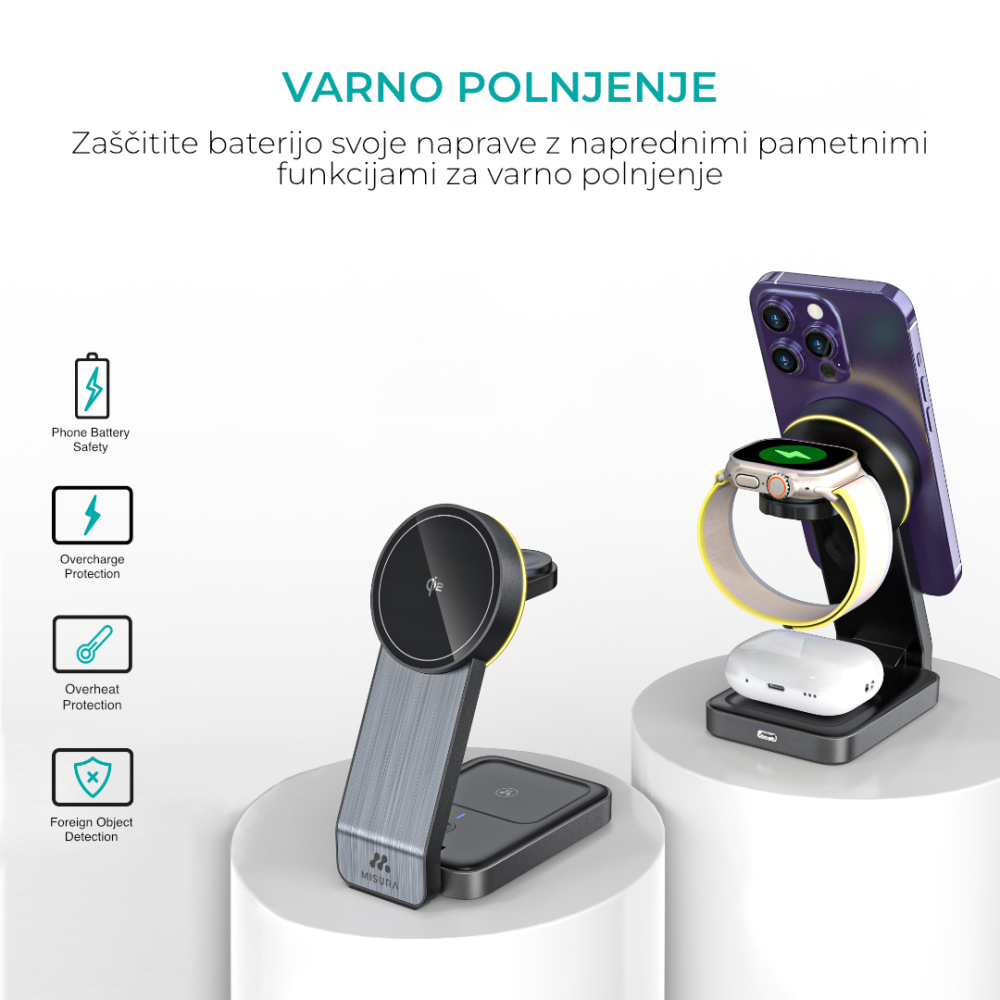 3-v-1 Brezžična Polnilna Postaja MISURA MH10