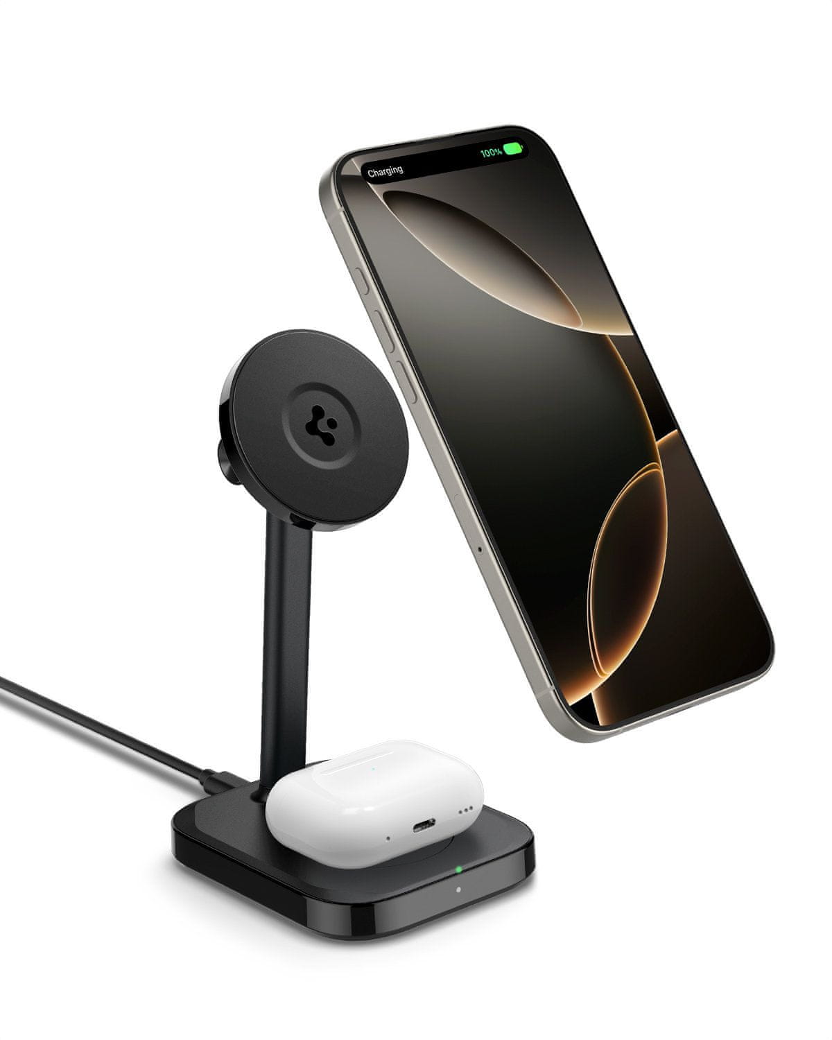 Brezžični polnilnik Spigen ArcField MagSafe 2-v-1 Qi2 15W Združljiv z iPhone s tehnologijo Magsafe, AirPods in AirPods Pro. Celoten opis