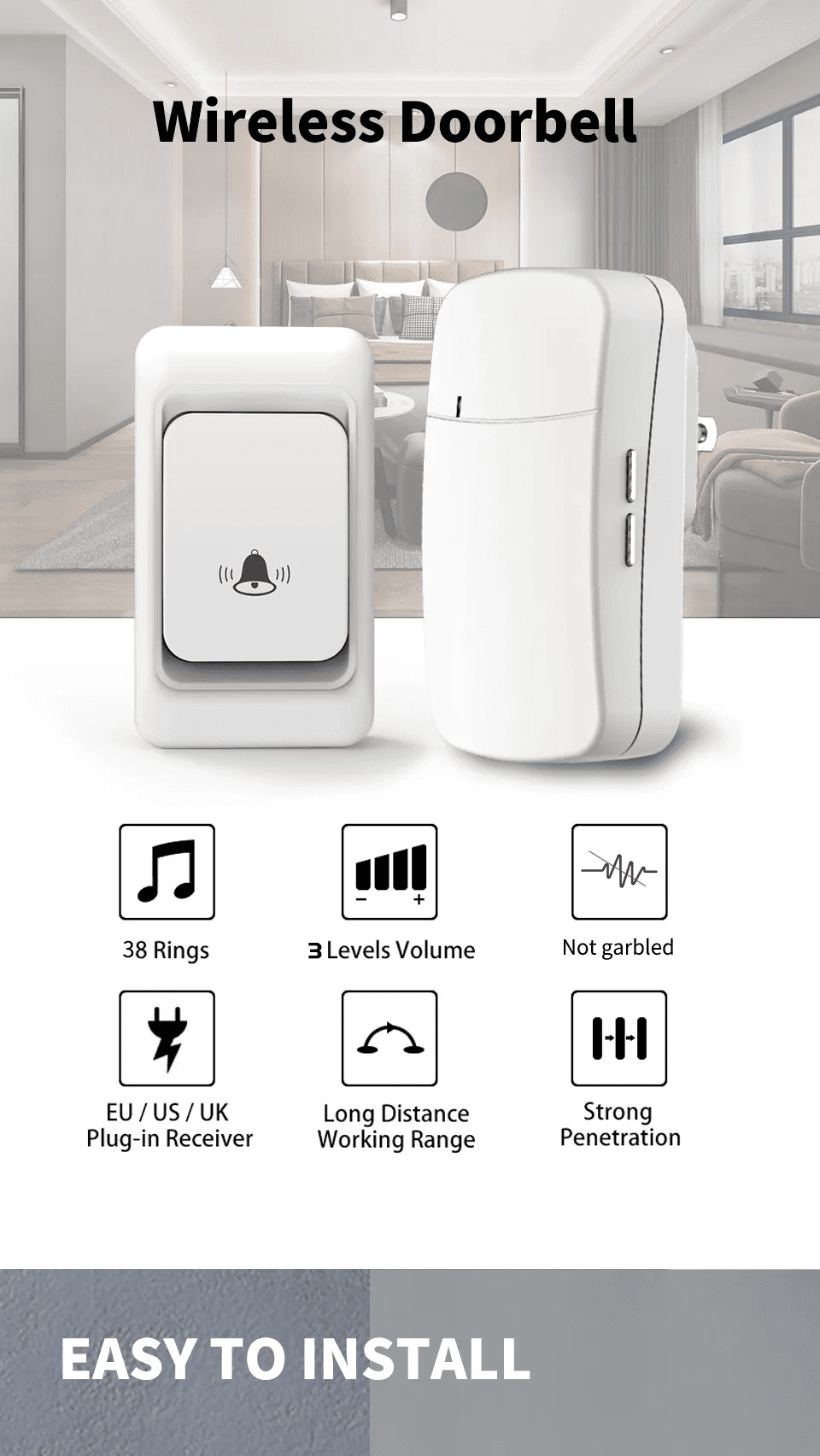 Bentech DB002W brezžični zvonec, AC