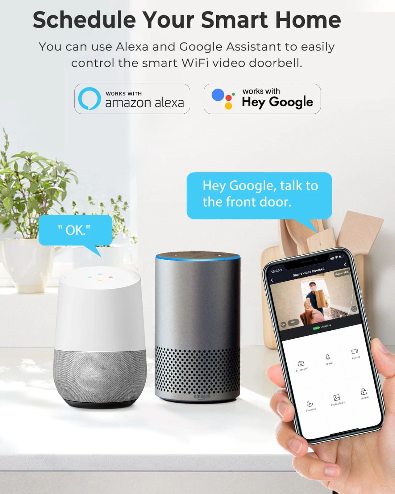 S podporo za operacijska sistema Android in iOS ter možnostjo upravljanja prek aplikacije Tuya Smart/Smart Life je ta pametni zvonec zlahka dostopen vsem. Z združljivostjo z Amazon Alexa in Google Assistant pa se odlično vključi v vaš pametni dom.