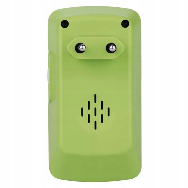 Brezžični zvonec AC P5740 belo-zelen Brezžični zvonec AC P5740 je eleganten zeleno-bel zvonec znamke EMOS. Ta zanesljiv brezžični zvonec je opremljen s 3 melodijami. Zvonec ima največjo glasnost 85 dB in doseg do 100 m na neoviranem terenu. Brezžični zvonec ima stopnjo zaščite IP44, zaradi česar je odporen na prah in vlago. Brezžični zvonec vključuje gumb, ki ga napaja 1×12V baterija A23 (priložena). Ta vrsta zvonca je odlična rešitev, na primer pri hišnih vratih. Parametri: Vrsta: Brezžični zvonec Barva: Zeleno-bela Povezava gumbov: Brezžična Največji doseg: 100 m Število melodij: 3 Način seznanjanja: Samodejno seznanjanje Posebne lastnosti: Indikator nizke napolnjenosti baterije Optični signal v gumbu: DA Maks. Glasnost zvonjenja: 85 dB Možnost dodajanja dodatne tipke: DA, največ 3 Napajanje tipk: 1 × 12V A23 (priložena) Nastavitev glasnosti: DA Frekvenca: 433,92 MHz Napajanje: 230V AC