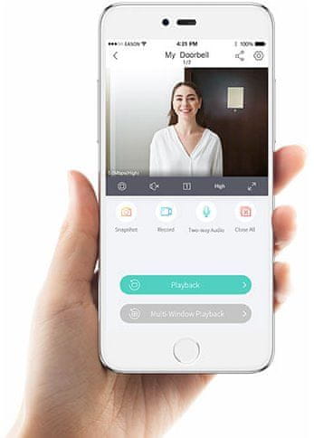 Vgrajeni mikrofon in zvočnik omogočata pogovor z obiskovalci v realnem času, ne glede na vašo lokacijo.