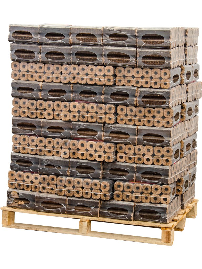 Na paleti je 96 kom po 10kg (skupaj 960 kg). Premium lesni briketi z luknjo so sestavljeni iz trdega lesa hrasta. Luknja v sredini naredi briket izjemno čvrst in trd in s tem počasnejše izgoreva. So povsem naravni izdelek brez dodatnih kemičnih veziv. Še posebej primerni so za kamine in peči. Celoten opis