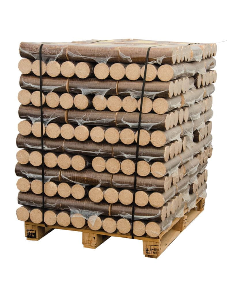 Na paleti je 96 kartonov po 10kg (skupno 960 kg). Lesni briketi so sestavljeni iz trdega lesa (bukev in hrast) brez dodatnih primesi z le do 0,5% pepela in vlage samo do 8%. So naravno stiskani in pripravljeni za kurjavo in so odličen nadomestek drvom. Gre za zelo čisto uporabo.