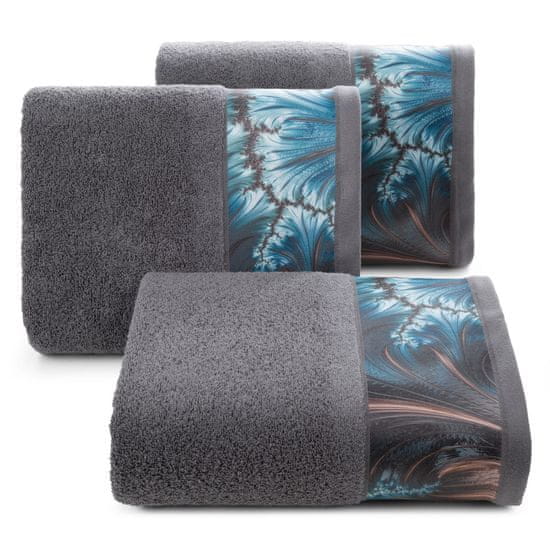 Brisača s potiskanimi robovi širina: 50 cm, dolžina: 90 cm, barva: jeklena, teža: 500 GSM, sestava: 100 % bombaž; 94 % bombaž, 6 % poliester