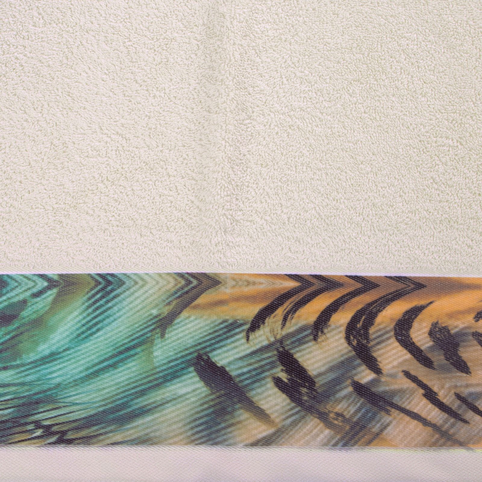 Brisača s potiskanimi robovi širina: 70 cm, dolžina: 140 cm, barva: bež, gramatura: 500 GSM, sestava: 100 % bombaž; 96 % bombaž, 4 % poliester