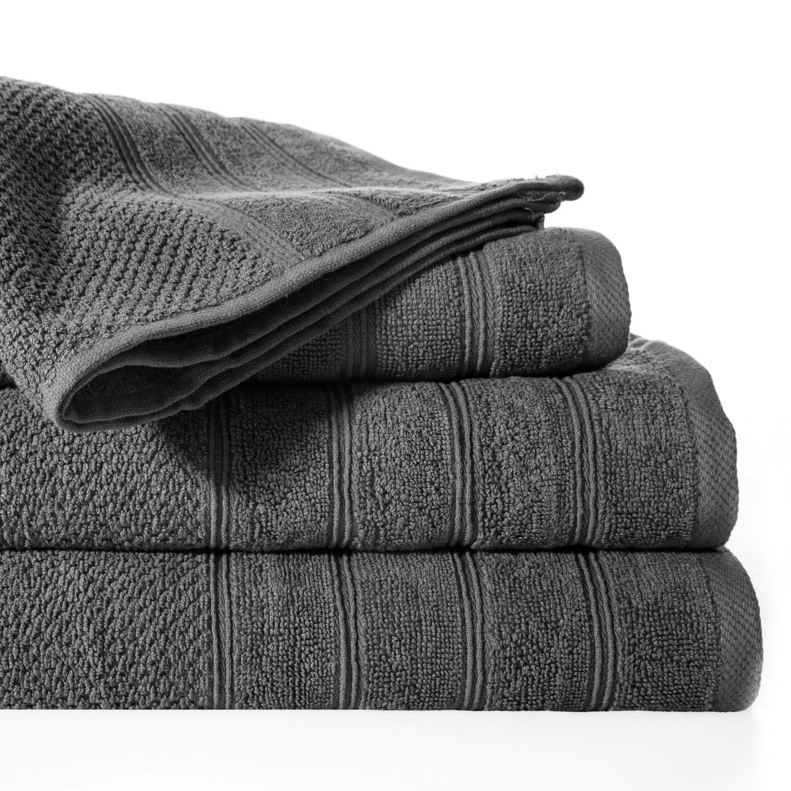 Klasična enobarvna kopalna brisača iz mehkega in prijetnega frotirja. Subtilna meja s tankimi črtami. Odporen na pranje barv. Širina: 50 cm, dolžina: 90 cm, barva: jeklena, teža: 500 GSM, sestava: 100 % bombaž