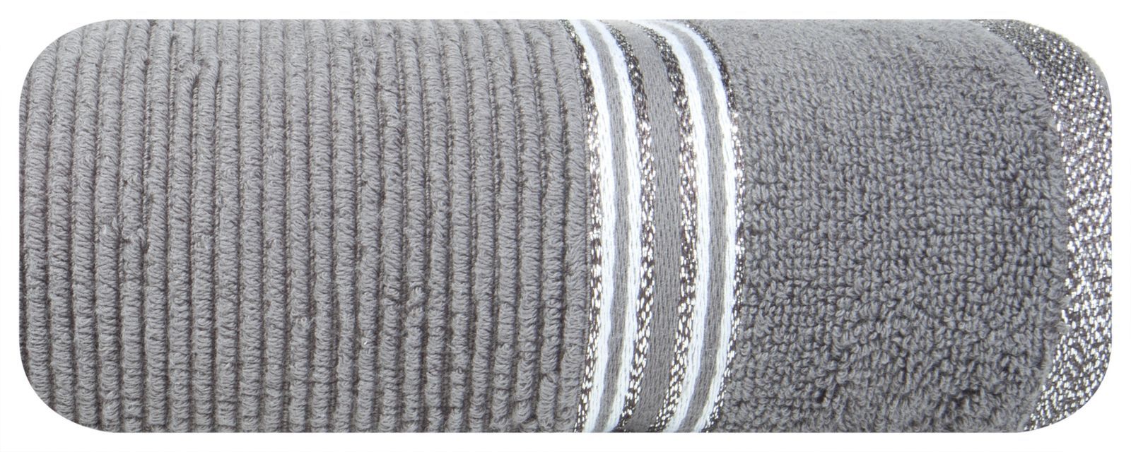 Zelo puhasta in izjemno vpojna brisača iz frotirnega bombaža s fino rebrasto strukturo. Širina: 30 cm, dolžina: 50 cm, barva: srebrna, teža: 530 GSM, sestava: 100 % bombaž; 97,3 % bombaž 1 % kovinska nit 1,7 % poliester
